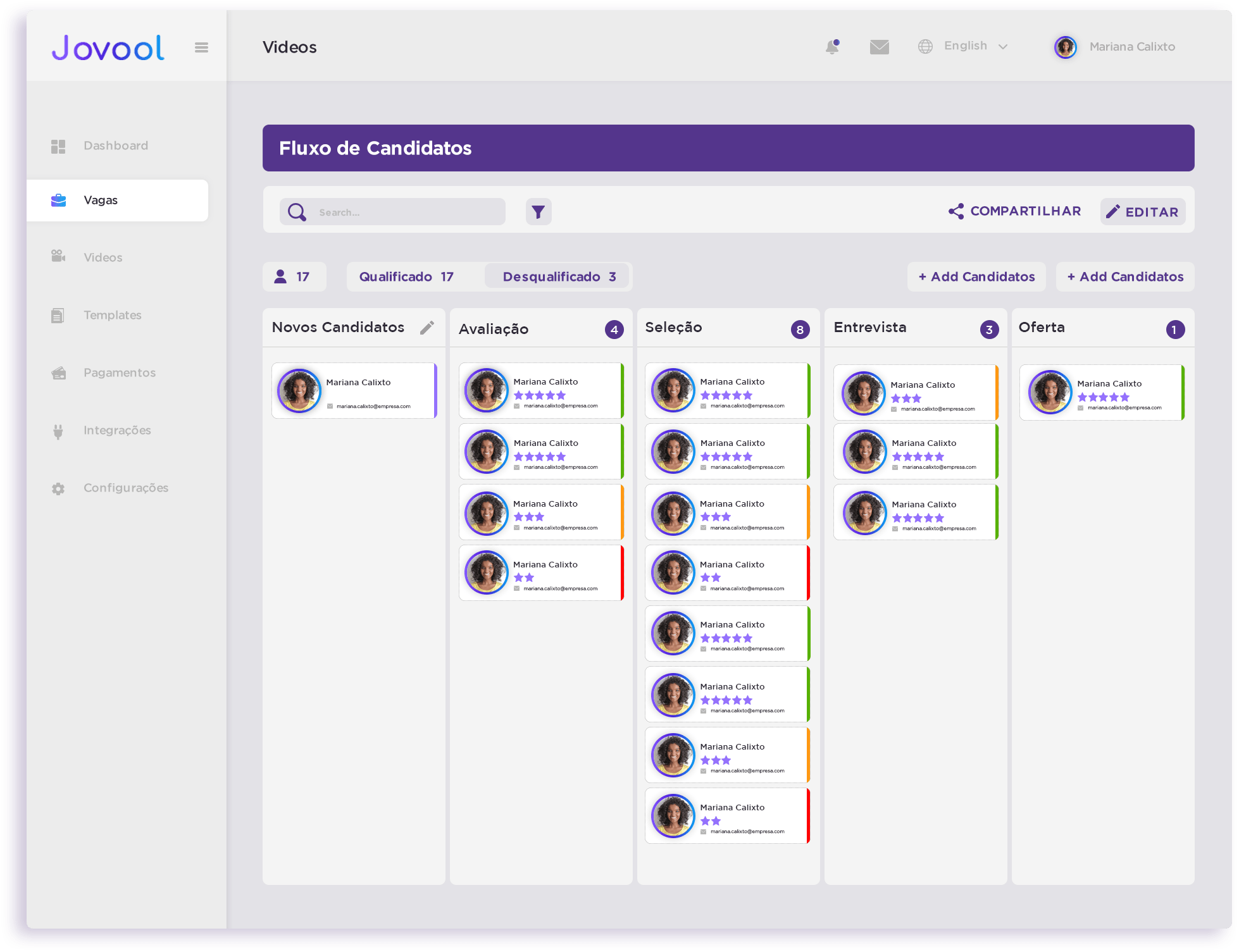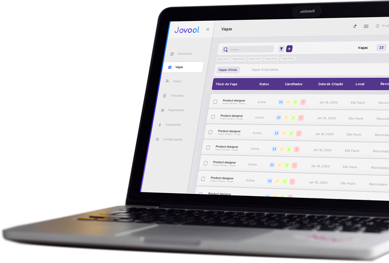 Inove utilizando a Jovool em diversos estágios de seu processo de atração de talentos por meio de entrevistas ao vivo ou on demand.